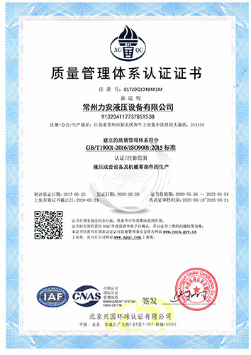 常州力安液壓設備有限公司位于江蘇省常州市新北區奔牛工業集中區,最早成立于1997年,注冊資金1億元人民幣,新廠占地面積約33000平方米,老廠占地面積約5600平方米,現有員工130人,中、高級工程8人,助理工程師16人。公司利用技術和裝備優勢開發了非標特大型液壓油缸(可制造缸徑1.8m,行程20m的液壓缸)、大型打樁船樁架變幅油缸、鑄造機內導式油缸、外導式油缸、船用油缸、海洋裝備油缸、液壓冷拔機、水電工程液壓啟閉機、冶金油缸、多級油缸、超高壓油缸、AGC伺服油缸等各類工程油缸,是國內專業的內導式油缸、大型液壓油缸、大型液壓冷拔機設計制造企業,同類產品的生產和銷售能力穩居行業前茅。